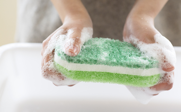 水筒をきれいにするためには、スポンジが清潔であることが前提です。水分や汚れが残ったままのスポンジをそのまま放置すると雑菌が繁殖しやすいため、毎日除菌することをオススメします。スポンジ除菌の手順を、無添加石けんやキッチン周りのアイテム製造・販売を行うシャボン玉石けん株式会社・広報の川原さんに教えていただきました。