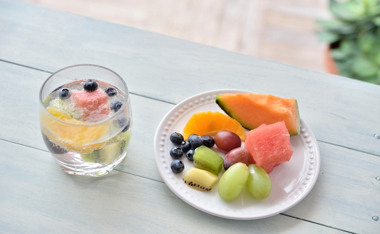 「炭酸水にフルーツを入れて飲んでもいいですし、炭酸水に漬けたフルーツを食べてもいいでしょう。フルーツは好みのものでかまいませんが、炭酸水に漬けて食べる場合は、すいかやメロンは炭酸がしみこみやすくておすすめです。ファスナー付きの食品保存バッグや広口の瓶などを利用すると、炭酸がより抜けにくくなります。フルーツを口に入れると、シュワシュワしてさわやかな食感が味わえ、気分もリフレッシュできますし、フルーツに炭酸がしみ込んでいるので、炭酸水を飲んだときと同じ効果が得られます。ぜひ試してみてください」