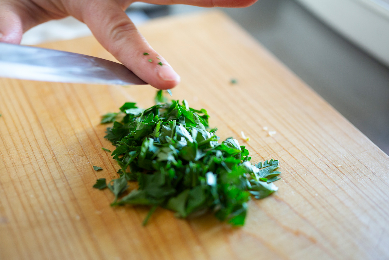 オリーブオイルは、香り高いエクストラバージンをかけるのがおすすめ。イタリアンパセリは、食卓に出す直前に散らした方が、シャキッと鮮やかに見えます。