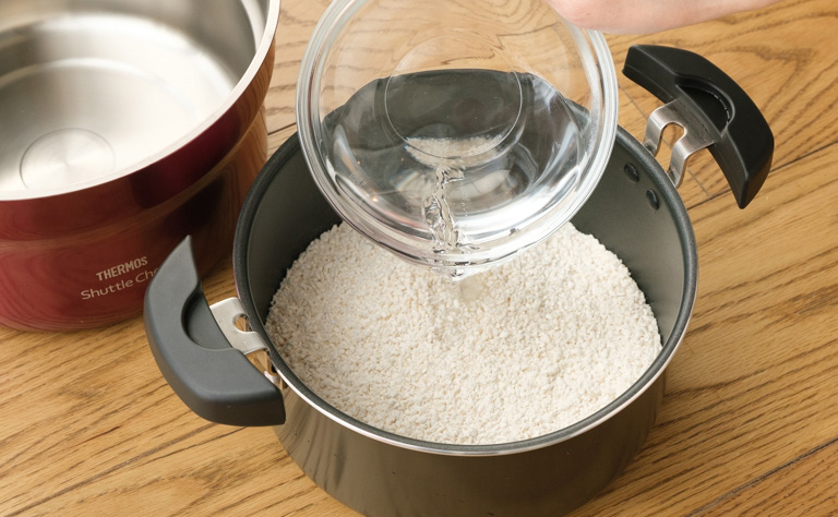 シャトルシェフの保温容器なら、2時間くらいは温度を保ってくれて、じっくり温めることができるんですよね。だから発酵料理を作るのにぴったり。米こうじを戻し終わったら、次は発酵あんこを作っていきますよ! あんこを炊くのにもシャトルシェフを使うので、戻した米こうじはボウルなどに移して冷蔵庫に入れてください。