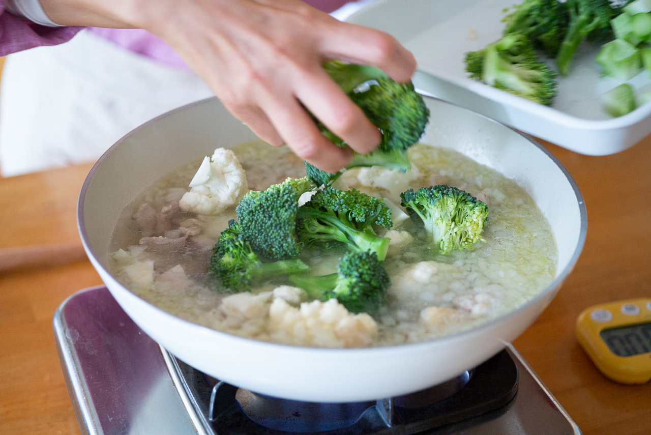 今回石澤さんに教えていただくのは、「ブロッコリーとカリフラワーのスープ」。この2つの野菜を選んだのは、からだが冷えやすい冬こそ食べてほしい食材だから。