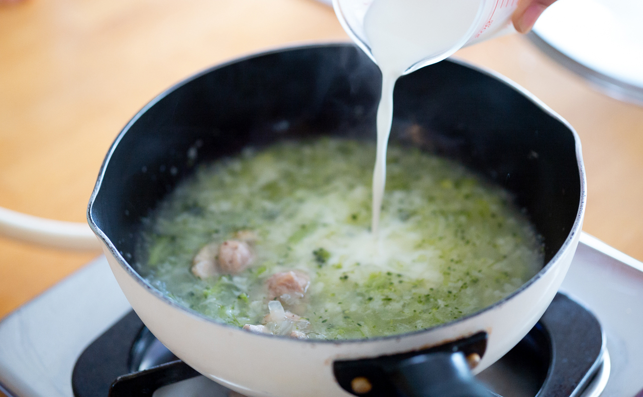 【2】牛乳を適量加えて軽く温めたら、出来上がり!