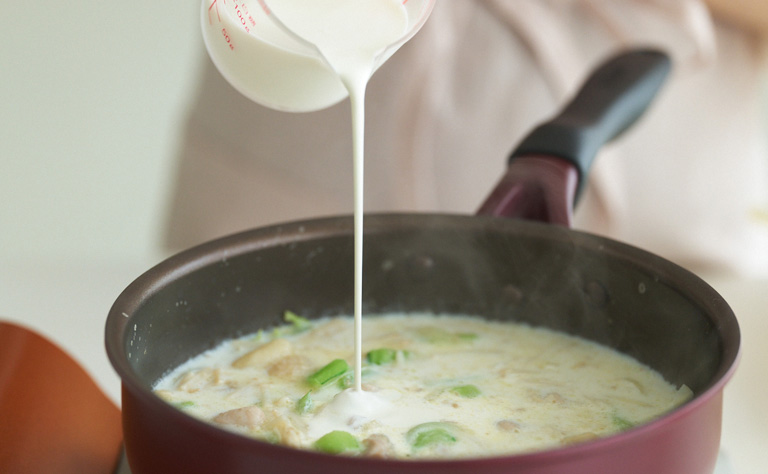 乳製品は沸騰させると分離してしまう可能性があるので、あまりぐつぐつさせないようにしましょう。特に生クリームは分離しやすいので、最後の方に加えるのがベストです。