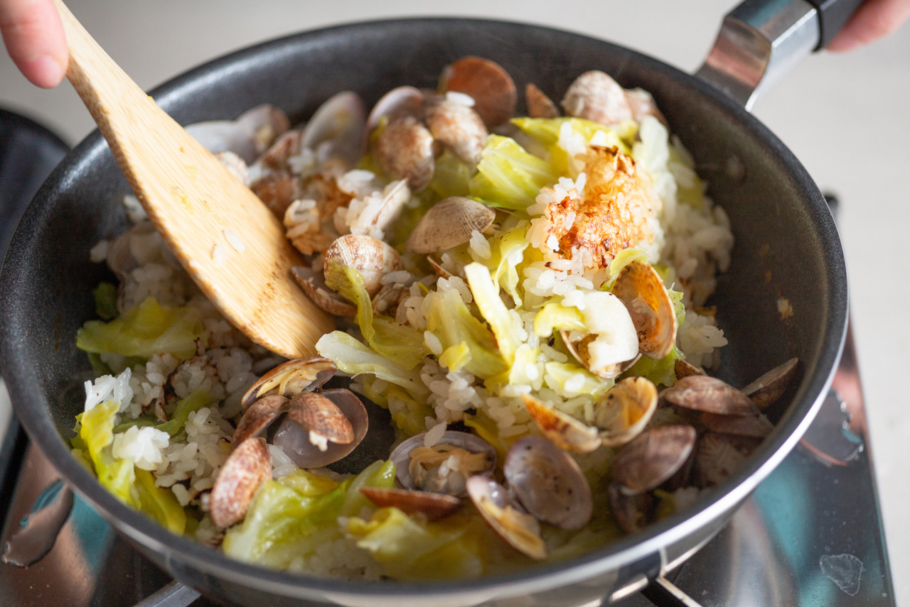 言葉の響きだけで、思わずうきうきした気分になる「炊き込みごはん」。実は、フライパンひとつで手軽に作れるんです。普段から炊き込みごはんをよく作るという、料理家の長谷川あかりさんに、旬の春キャベツとあさりを使った炊き込みごはんの作り方を教えていただきました。