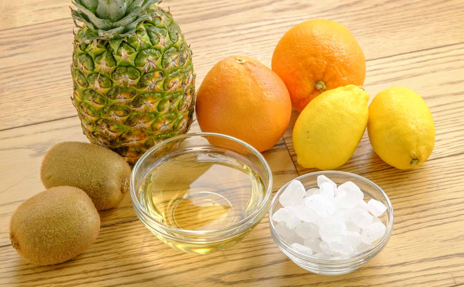 砂糖はゆっくりと溶ける氷砂糖がおすすめです。浸透圧によってフルーツのエキスがしっかりと抽出されます。一般的な白砂糖でも作れますが氷砂糖に比べて溶けにくいので、お箸やマドラーでかき混ぜて溶かすようにしてください。お酢は米酢やりんご酢でも作れますが、私は穀物酢を使うことが多いですね。クセがないのでフルーツの風味が活かせます。