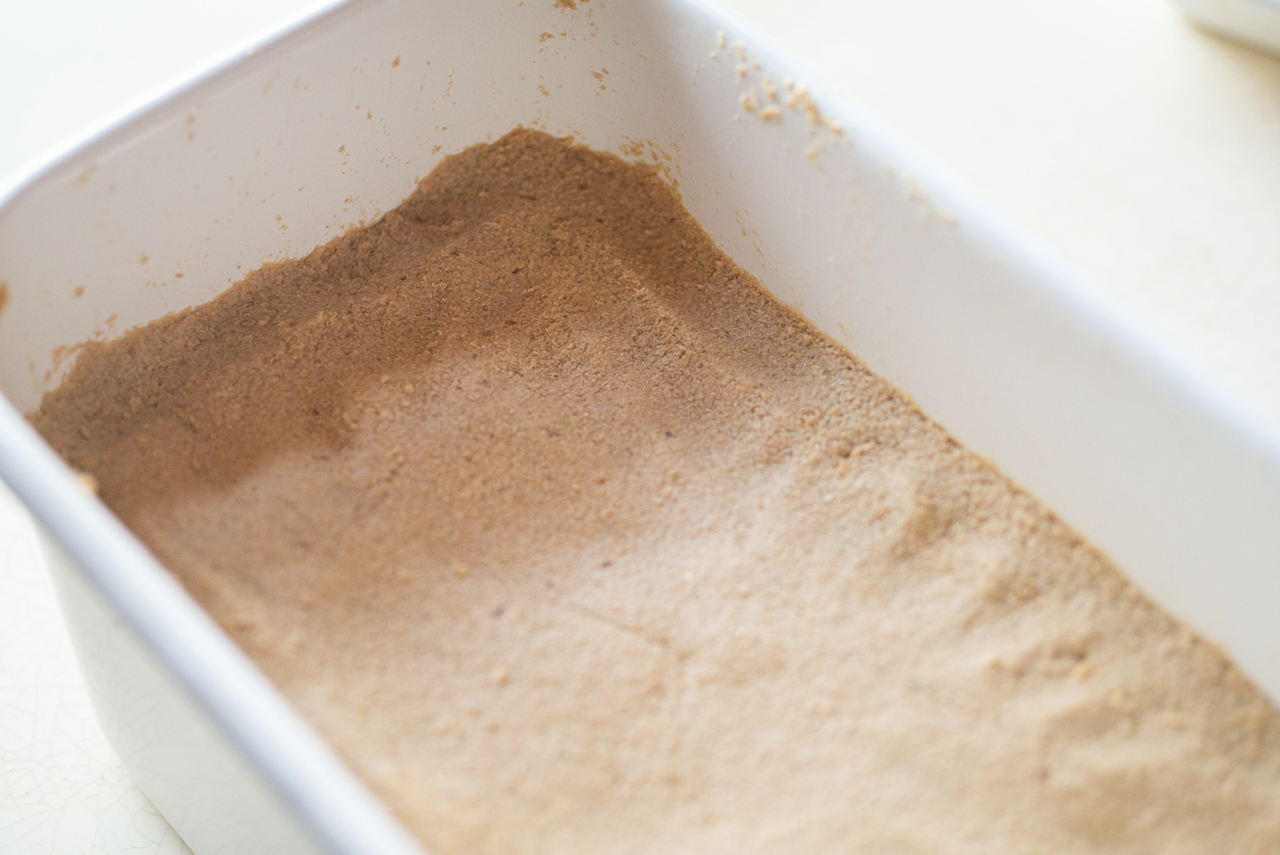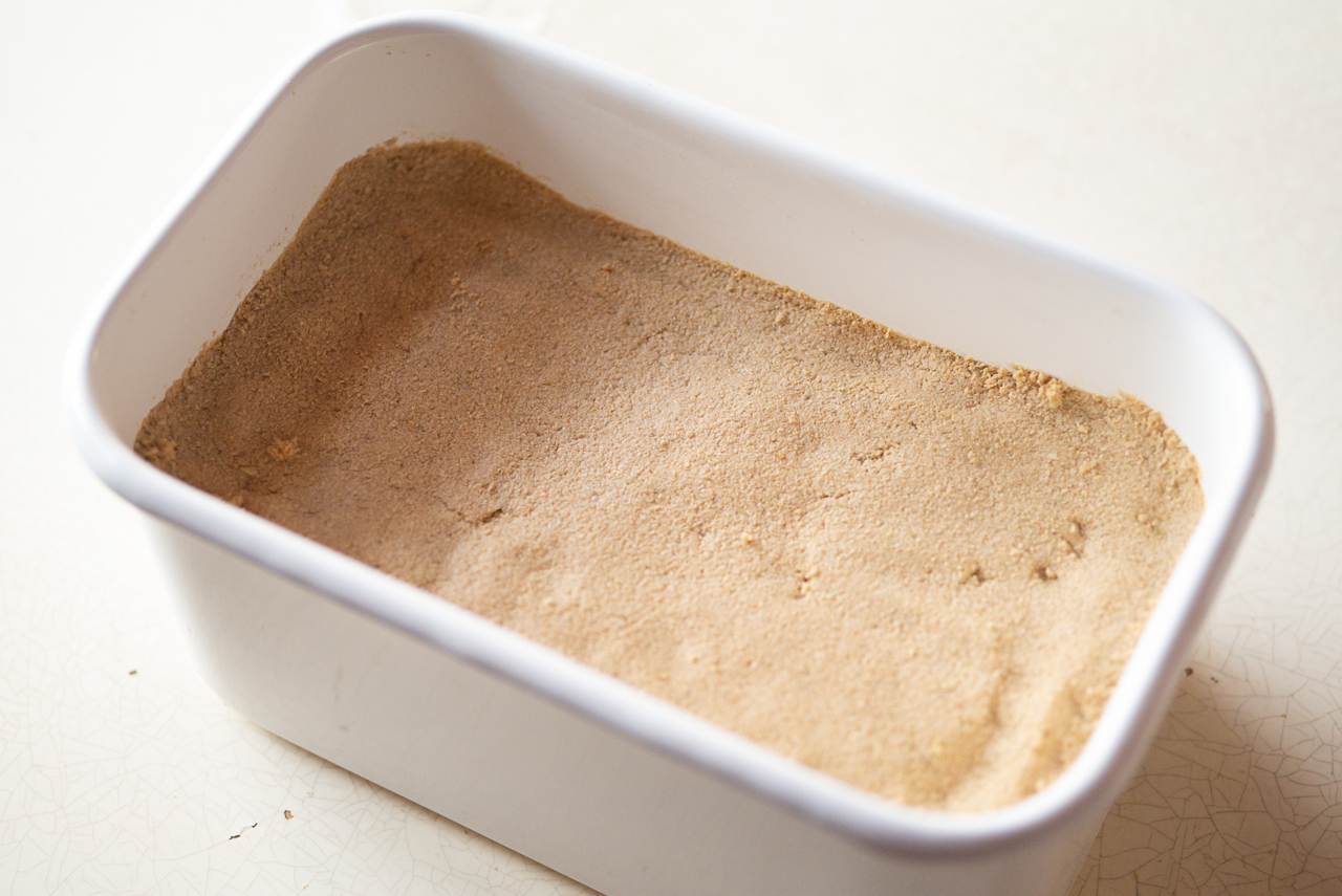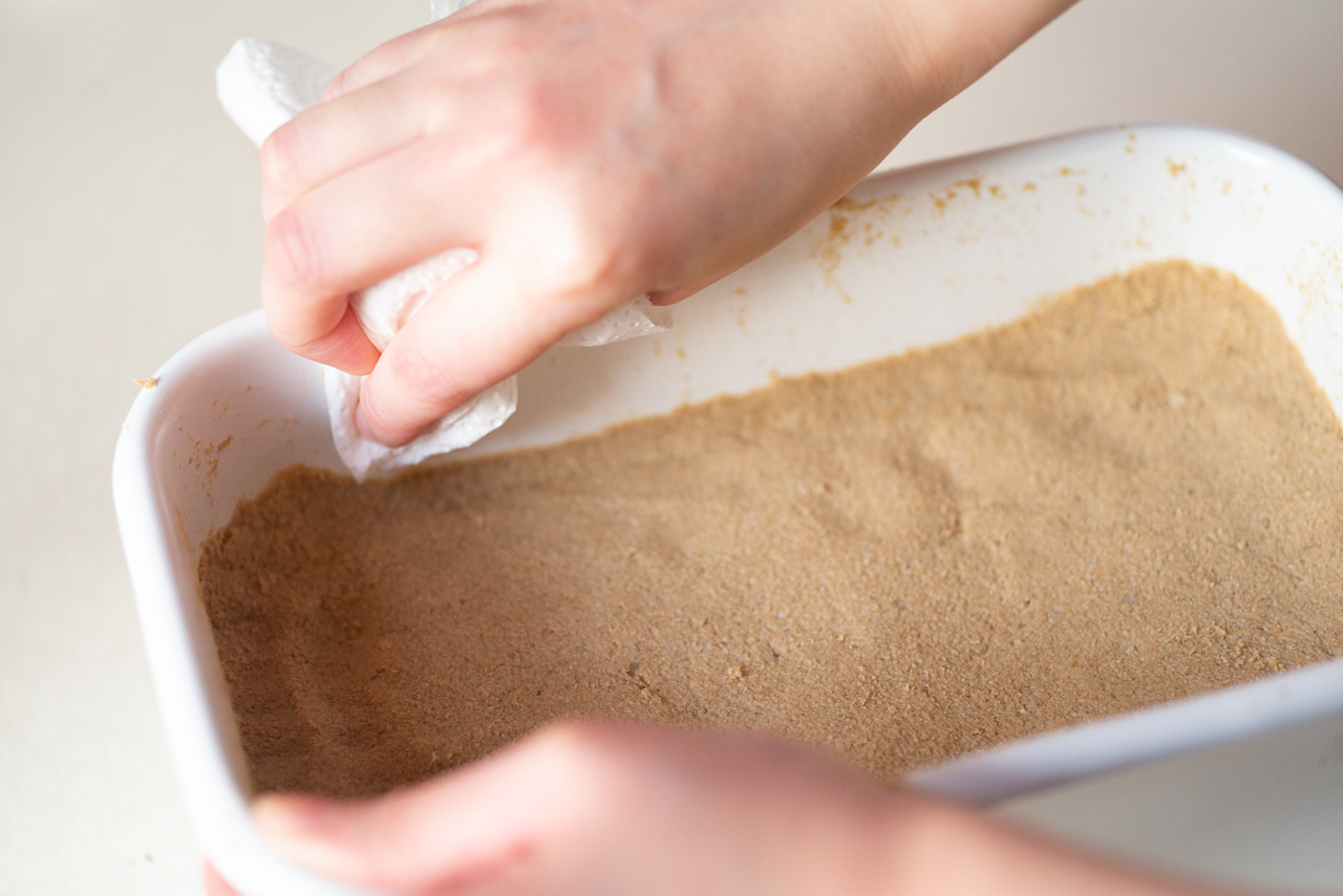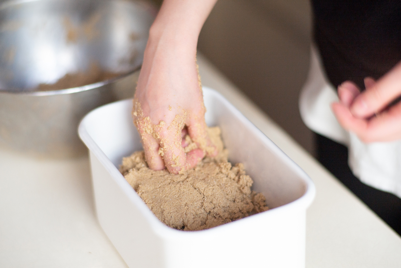 【3】ぬかを容器にうつして空気を抜き、平らにならす。