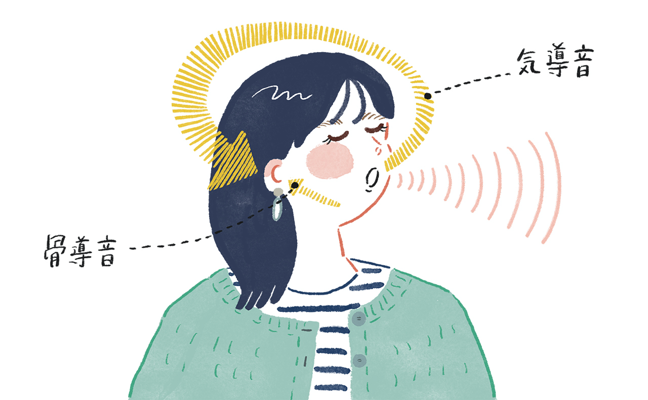 声には、耳から入る「気導音」と、体内から頭蓋骨などの骨を伝って内耳に届く「骨導音」があります。人に聞かせている声や録音した声は「気導音」、自分で話しているのを聞く声は「気導音」と「骨導音」が合わさったものです。骨導音は低めの周波数をよく拾うため、気導音だけである録音した声は自分のイメージよりも軽く、薄っぺらく聞こえます。