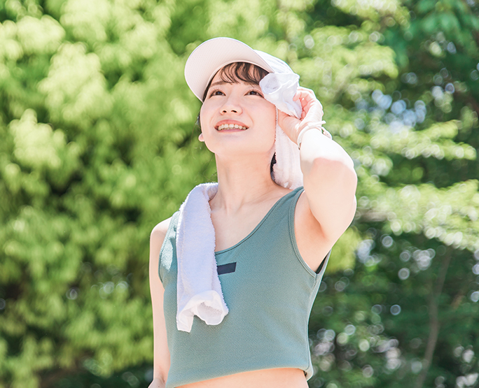 私たちの身体は、常に熱を作り出す一方、汗をかいたり、皮膚から熱を逃がすことで、体温の上昇を抑えています。このような体温の調節機能がうまく働かず、体内に熱がこもり、体温が異常に上昇することで熱中症は起こります。