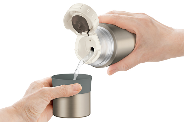 1Lは、夏場や屋外、スポーツ時の水分補給に手頃なサイズ。ペットボトルと違い、長く持ち歩いても冷たいままで最後まで美味しく飲めます。コップ付きの水筒は温かい飲みものも入れられるので、旅行や遠足などで飲みものを皆で分け合うこともできます。