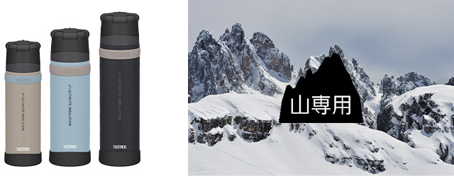 冬山の厳しい環境でも高い保温機能を発揮するサーモスの「山専用ボトル」はコップ付きの水筒です。 -