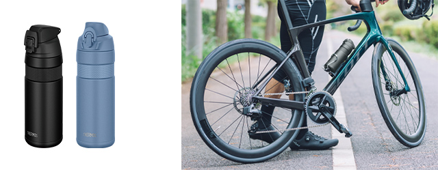 坂道での激しいヒルクライム、シーサイドラインのロングライド。夏の日差しや凍える冬の空気など、体力を奪う環境に抗する水分補給をサポートするために作られたサイクリストのための水筒です。スポーツバイク用ボトルケージにフィットする専用設計で、ケージから取り出しやすく、また持ちやすいボディリングが付いています。