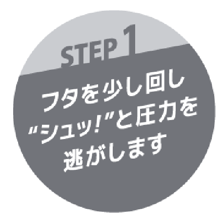 STEP1 フタを少し回し"シュッ!"と圧力を逃がします