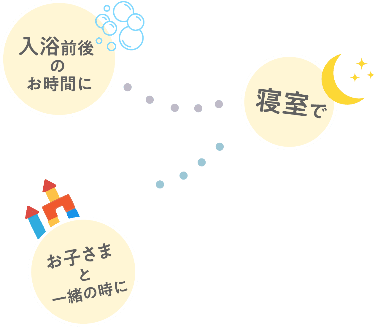 入浴前後のお時間に 寝室で お子様と一緒の時に