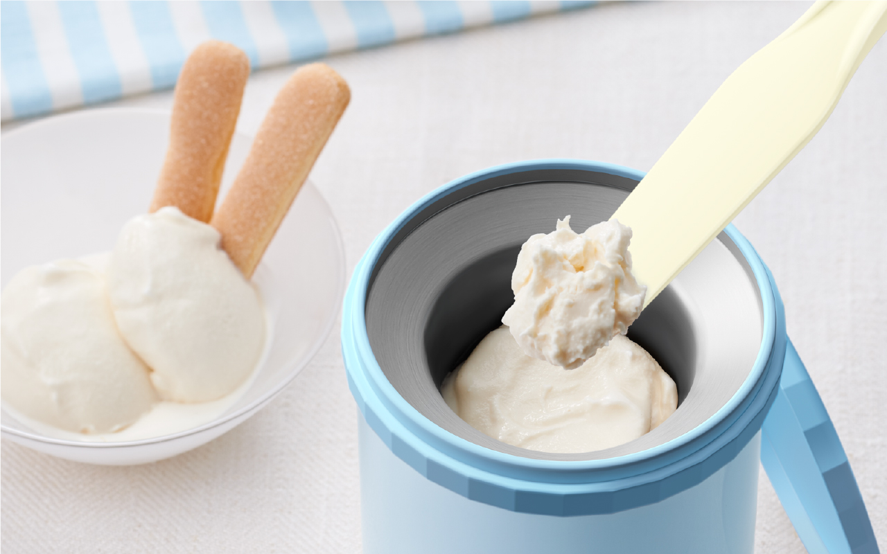 あらかじめ冷凍庫で冷やしておいた容器に、材料を入れてまぜるだけ。魔法びんと同じ保冷力で、お好きな固さのアイスクリームが簡単につくれます。 もっと詳しく→
