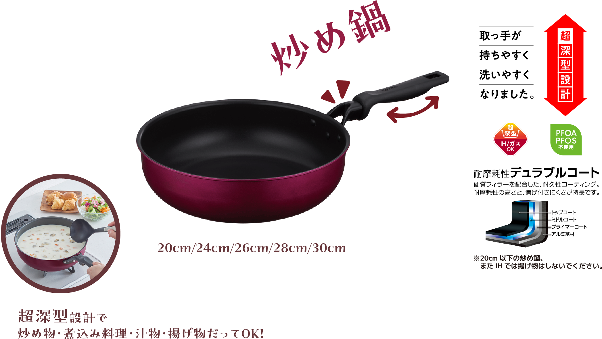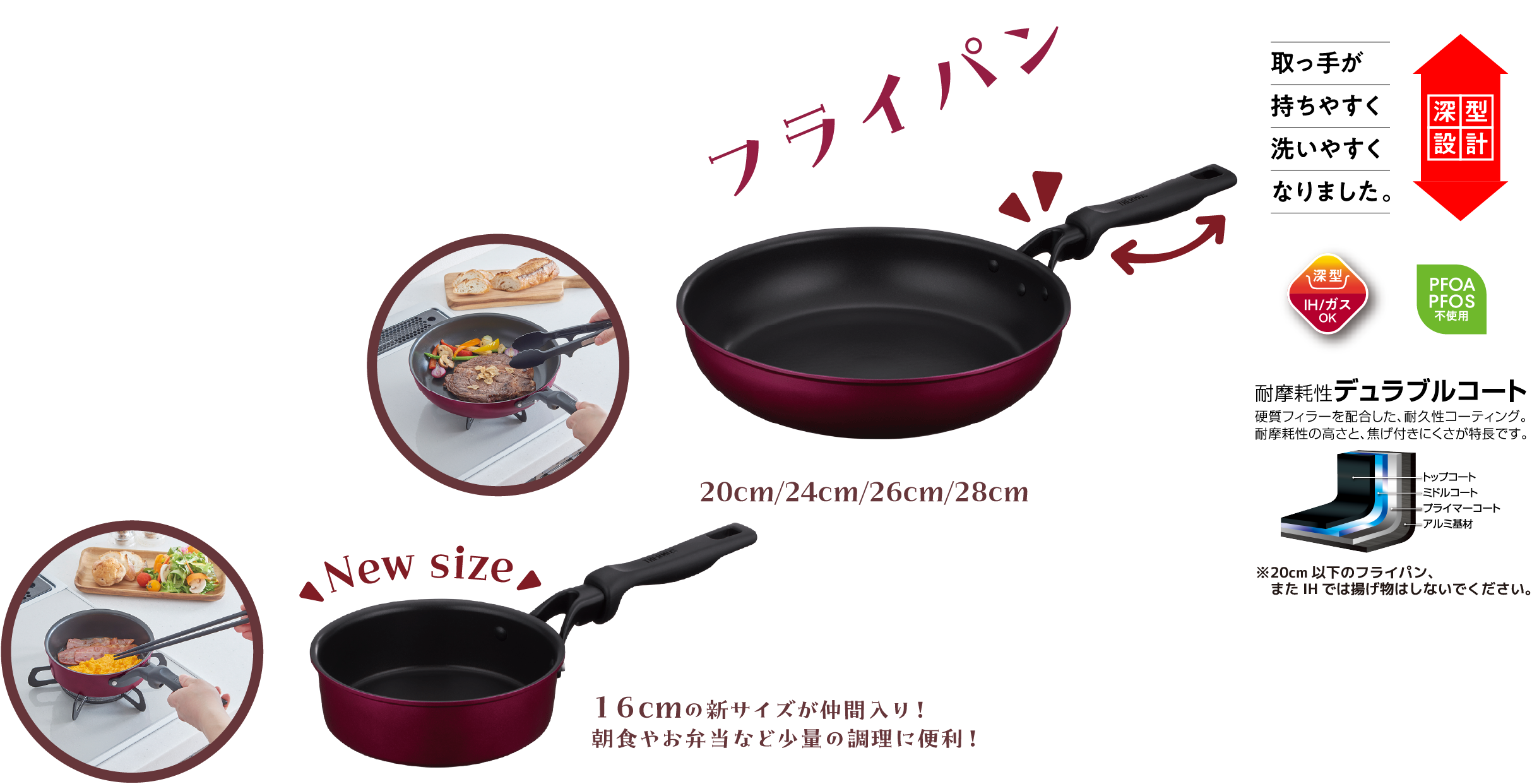 サーモスデュラブルシリーズ フライパン_KFM-016/020/024/026/028 炒め鍋_KFM-020D/024D/026D/028D/030D玉子焼きフライパン_KFM-013E