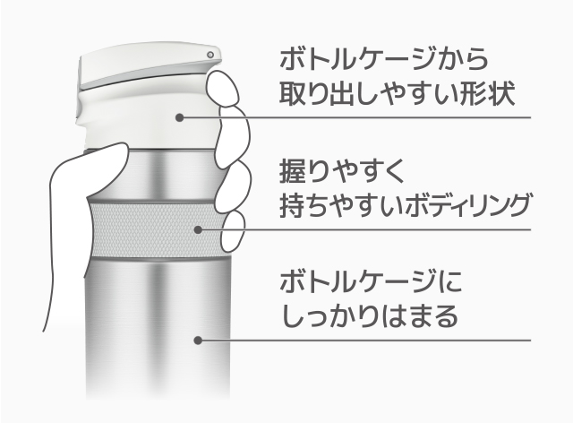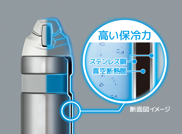 - ●保冷効力とは、室温20℃±2℃において製品に4℃以下の水をキャップユニット下端まで満たし、水温が4℃±1℃のときからキャップユニットを付けて縦置きした状態で6時間放置した場合におけるその水の温度です。