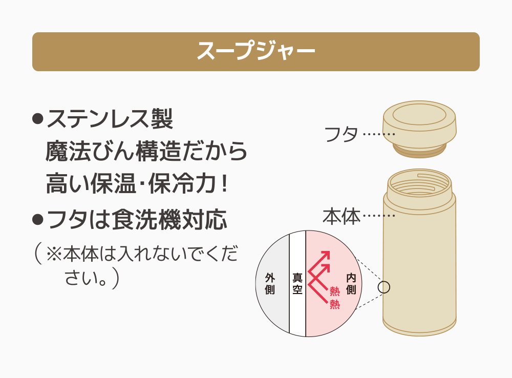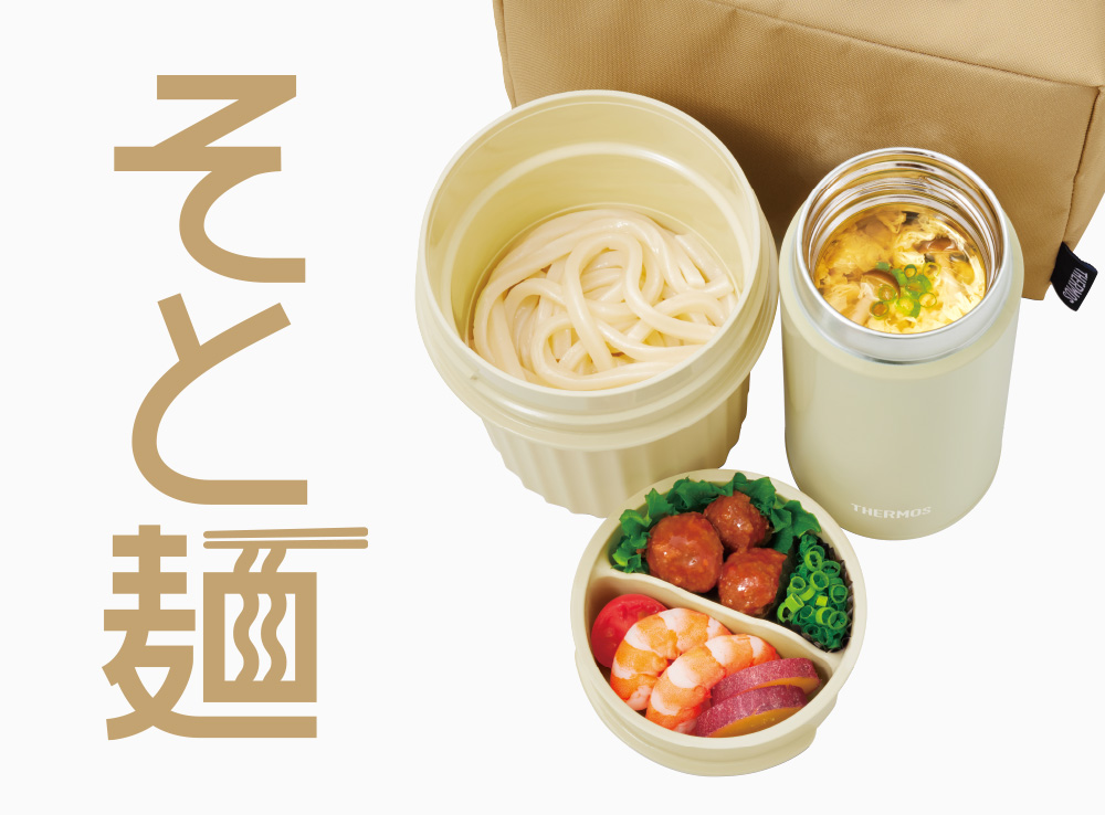 スープジャーと容器のセットでランチでも麺を楽しめます。