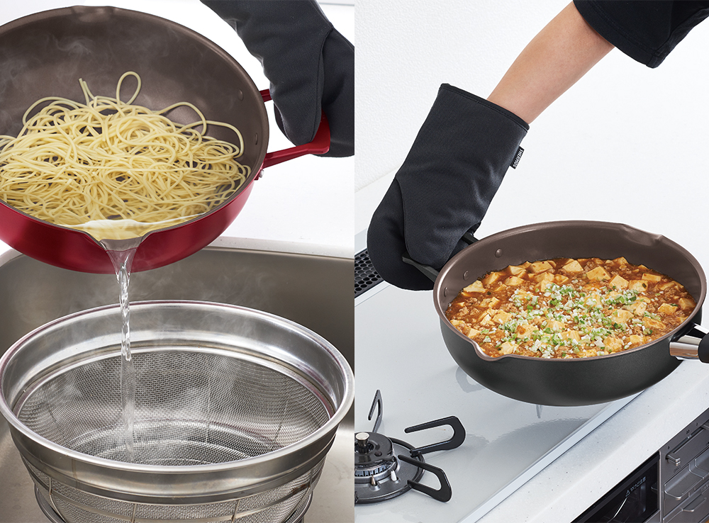 耐熱性の高い素材を採用したミトンです。ストラップ付きでフックにかけて収納できます。洗濯機OK