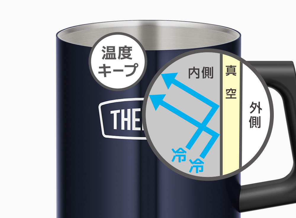 おいしさ長持ち!アウトドア仕様ステンレス製魔法びん構造のマグカップ