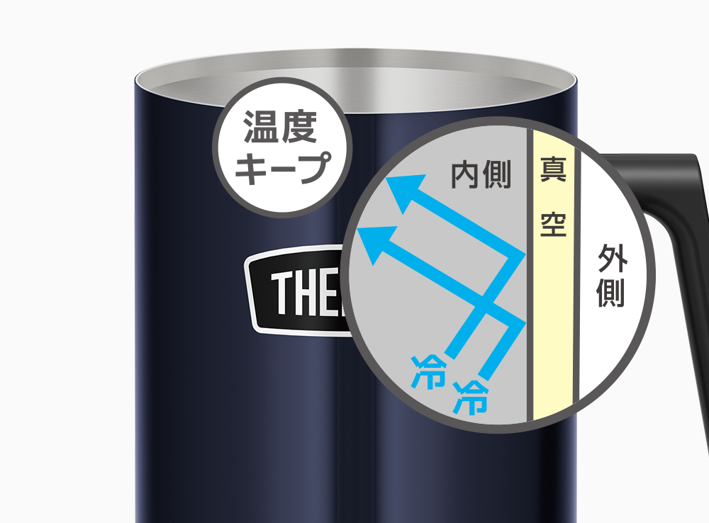 ステンレス製魔法びん構造だから 冷たさ長持ち
