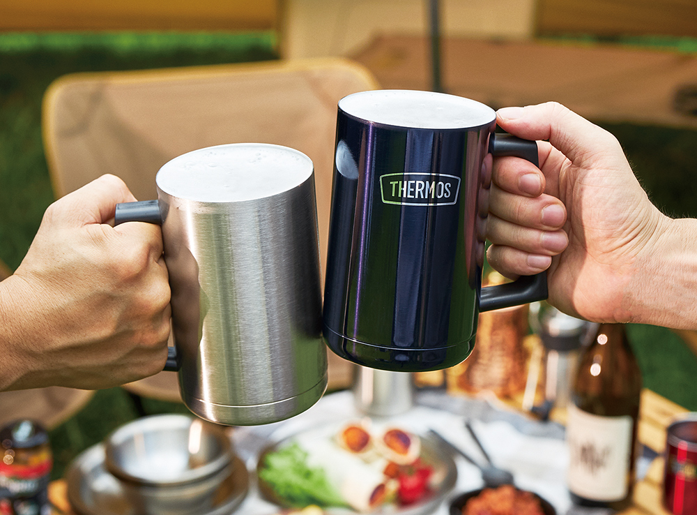 アウトドア仕様のジョッキが新登場!ステンレス製魔法びん構造なのでおいしさ長持ち!