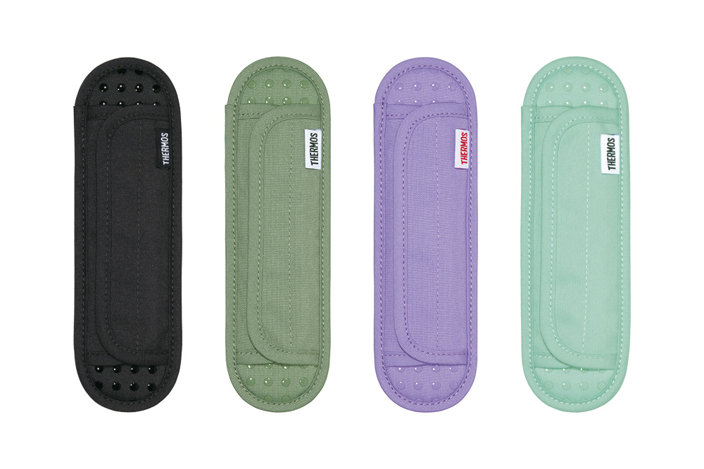 水筒のストラップにつけるショルダーパッド。クッション素材が肩への負担を軽減します。すべり止め加工付き。