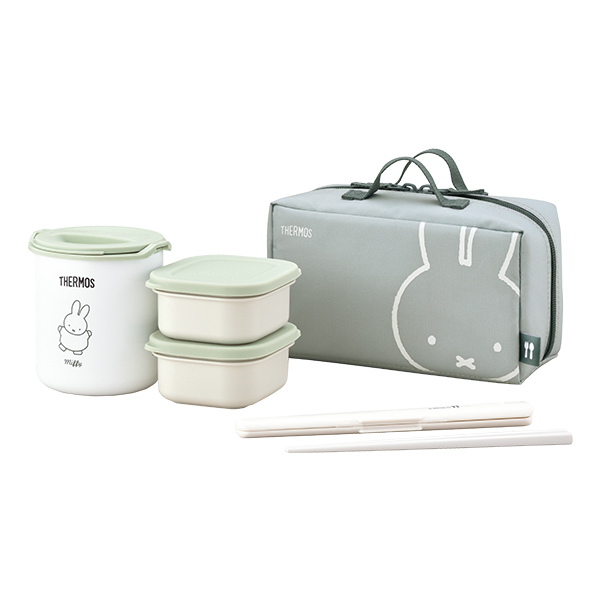 大人でも使いやすいカラーのミッフィーデザイン。ごはんを保温、おかずは常温でセットで持ち運べるお弁当箱です。各容器・フタ・ハシ・ハシケースは食洗機対応。