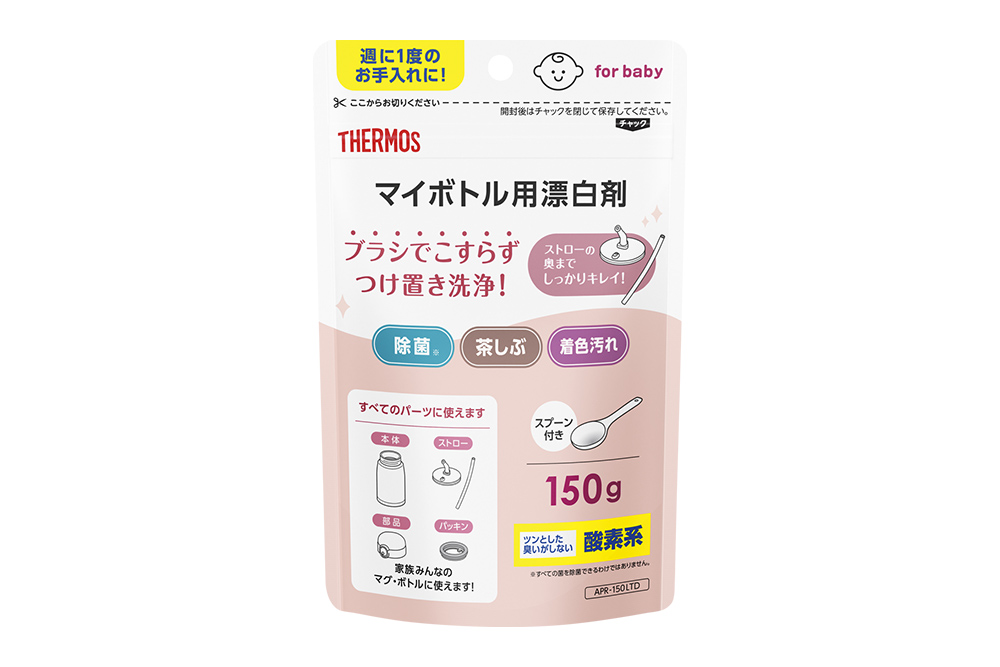 水筒内部のお茶やコーヒーの着色汚れ、部品やパッキンの汚れをきれいに落とせる酸素系漂白剤です。