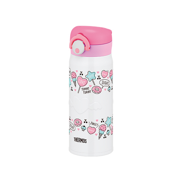 ケータイマグJNLシリーズに、アデリアレトロの絵柄をプリント。おでかけ先でもアデリアレトロのかわいらしいデザインを水筒で楽しめます。