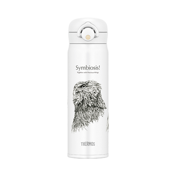 リアルな猛禽類のイラストのついたサーモス直営店・オンラインショップ限定のケータイマグ。