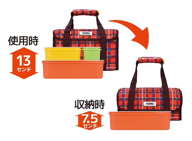 行楽、学校行事に大活躍のファミリー向けランチボックスに、保冷力のある断熱構造のバッグがついています。2段重ねになったタイプと3段重ねになったタイプの2種類をご用意。収納時には容器もバッグもコンパクトになる便利な設計も魅力です。