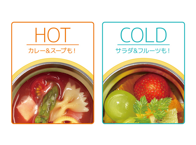 ごはんやおかずは常温で、スープは高い保温・保冷力で食べごろを。