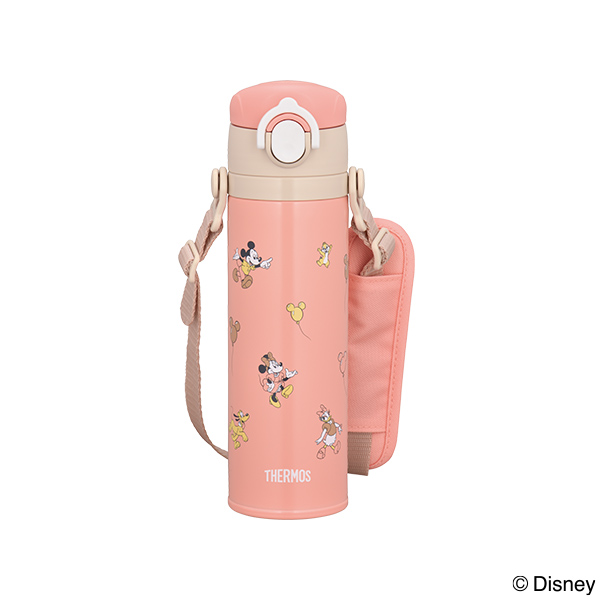 人気のミッキー&ミニーのついた、直接飲めるスポーツボトル(保冷専用)、コップ付きボトル(保温・保冷対応)の2通りで使える2ウェイボトル。