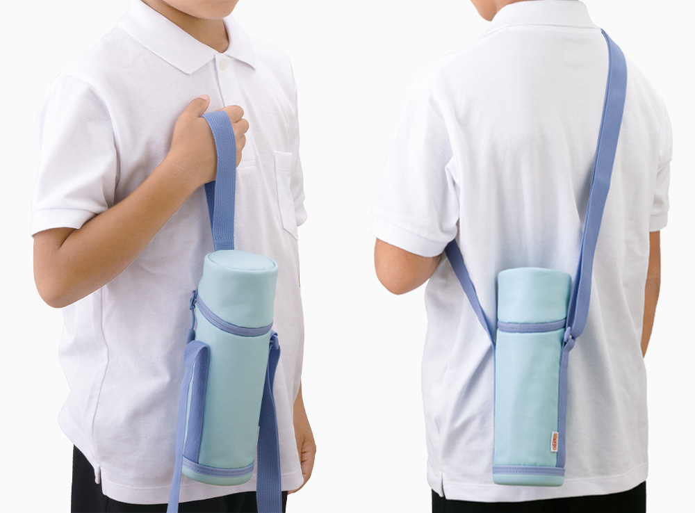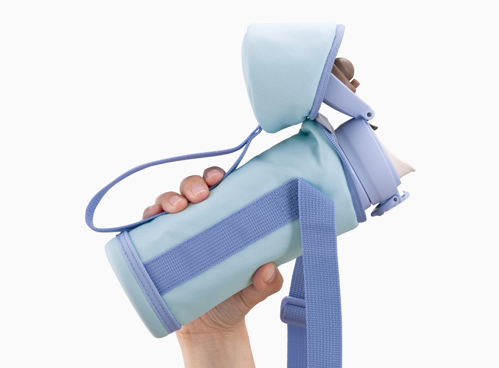 持ち手を使うとポーチフタを固定できます。※コップタイプでは直接飲めません。