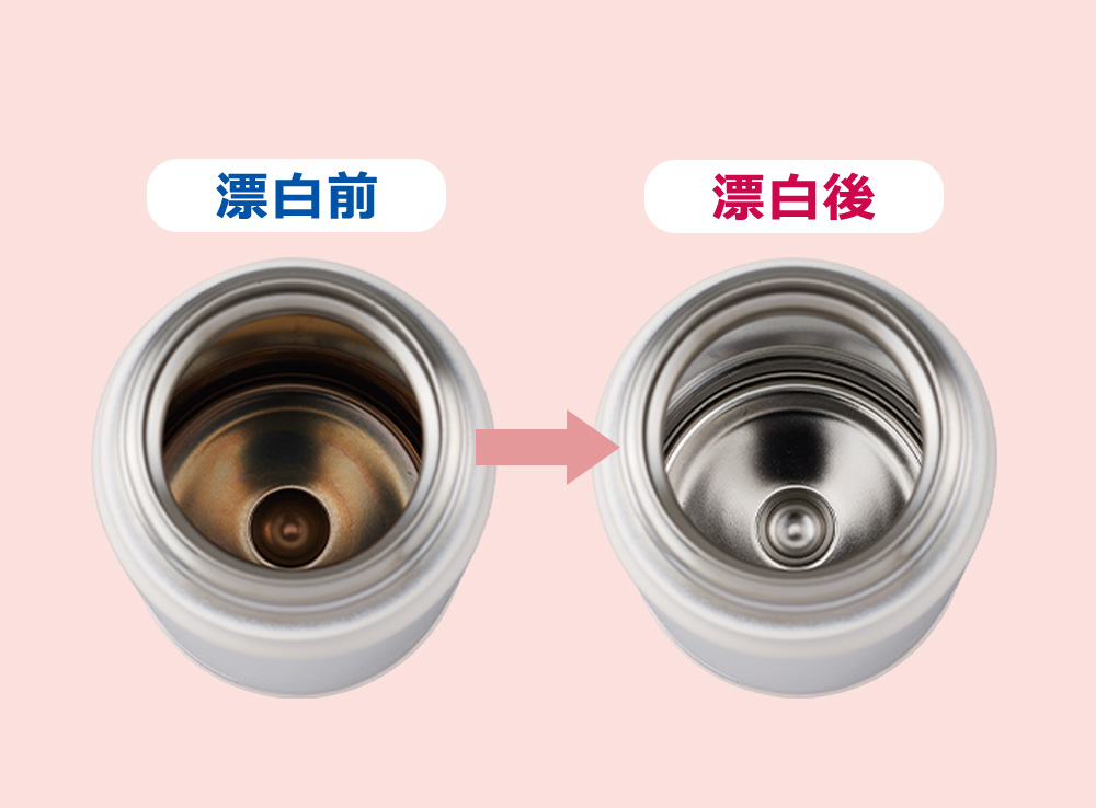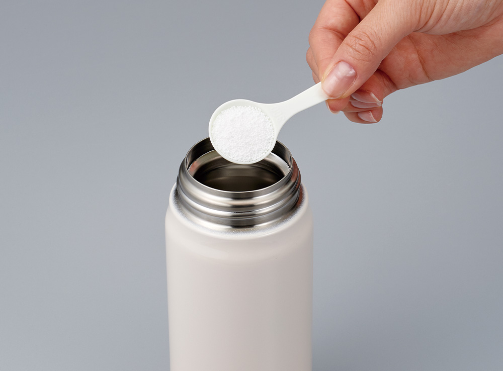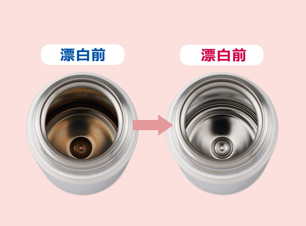 水筒にぬるま湯と酸素系漂白剤を入れて30分放置するだけ。