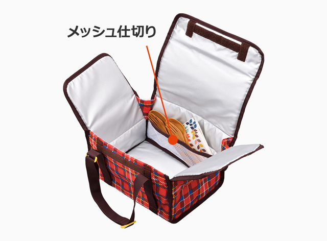 外気を遮断して保冷効果を高める専用保冷バッグはメッシュ仕切り付き。