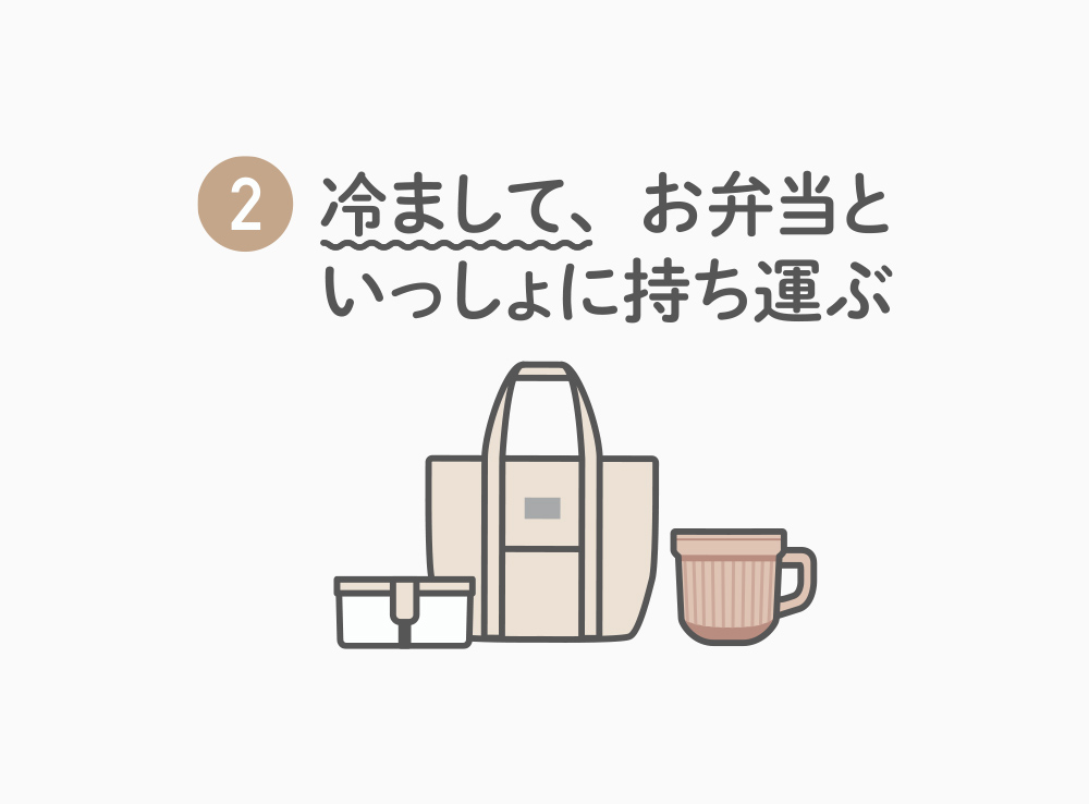 2 冷まして、お弁当と一緒に持ち運ぶ