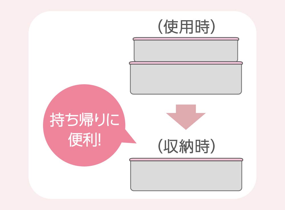 食べ終わったお弁当箱は、下容器に収納できるのでコンパクトになります。