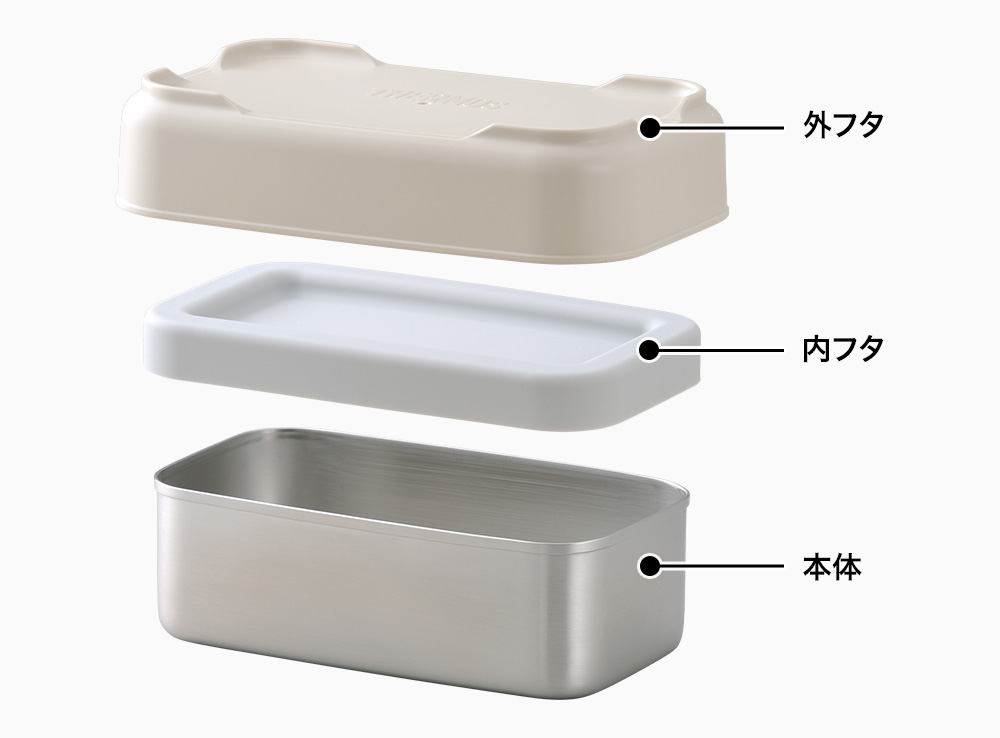 優れたスタッキング性とシンプルで洗いやすい構造。内フタの上に保冷剤を入れるスペース付き。