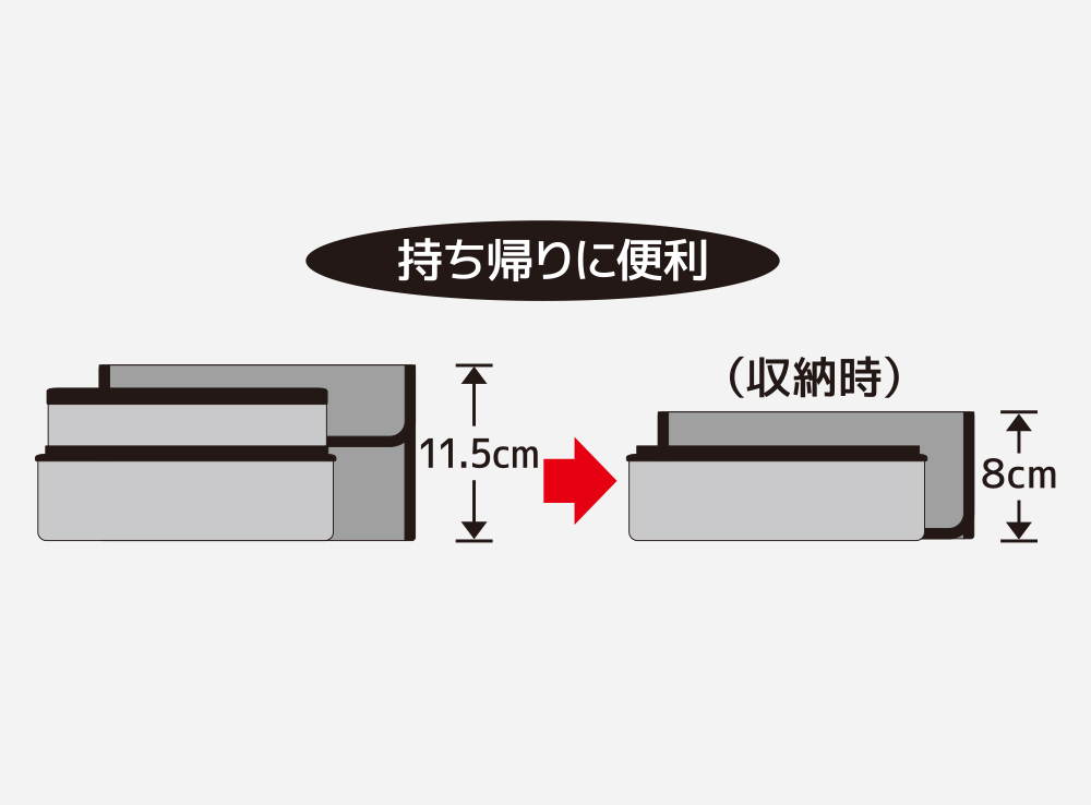 食べ終わったら、上容器は下容器に収納できるのでコンパクトになります。