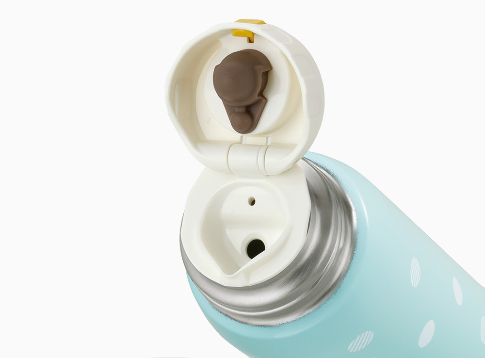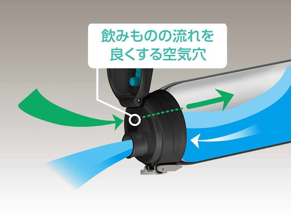 飲みものの流れを良くする空気穴を設けたので、飲み口をくわえても一気に飲める。