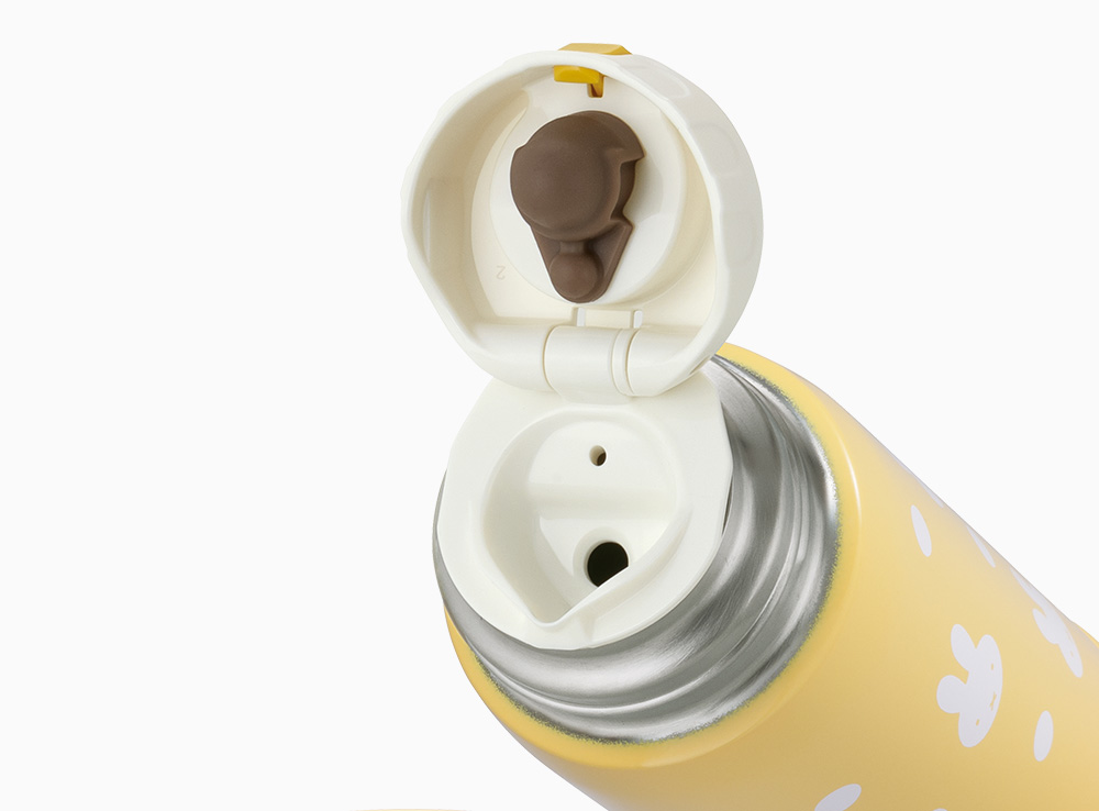 飲みものの流れを良くする空気穴を設けたので、飲み口をくわえても一気に飲める。