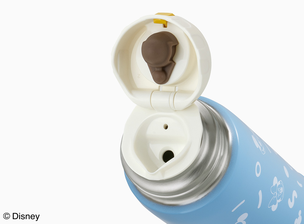 飲みものの流れを良くする空気穴を設けたので、飲み口をくわえても一気に飲める。