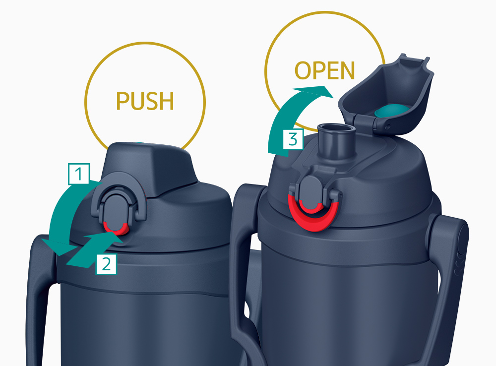 ワンタッチで簡単オープン。ツートンカラーのロックリングでロックされているのがわかりやすい。