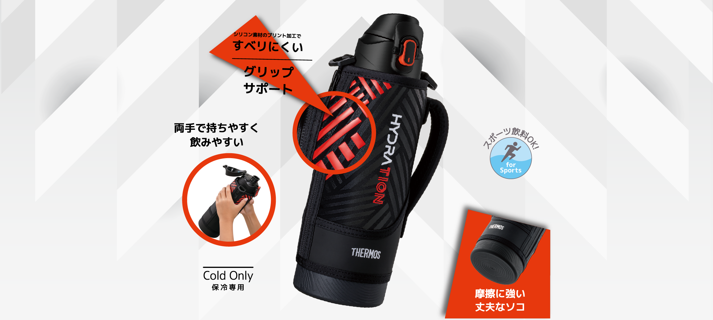 人気のスポーツボトルがリニューアル。 両手で握ったときにすべりにくい加工を施したポーチや、大きく開いて飲みやすいキャップユニットなど使いやすさにこだわりました。