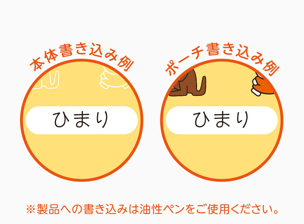 本体・ポーチにはお名前が記入できるフリースペースがあります。※製品への書き込みは油性ペンをご使用ください。