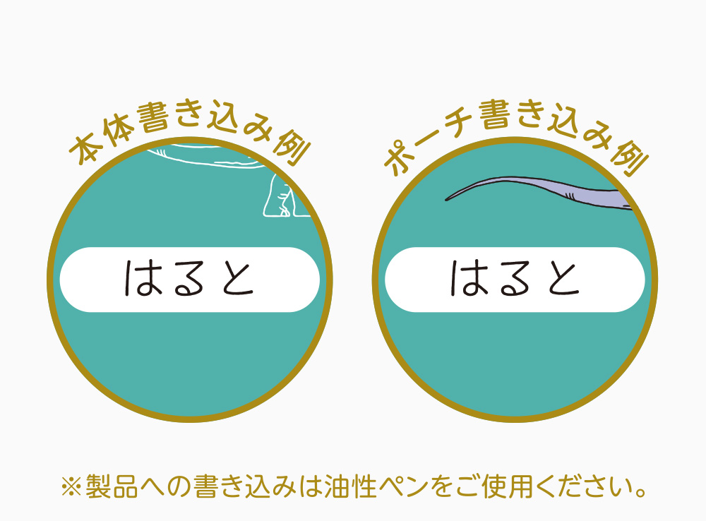 本体・ポーチにはお名前が記入できるフリースペースがあります。※製品への書き込みは油性ペンをご使用ください。