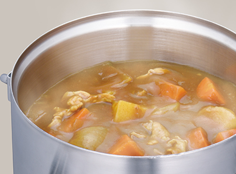 高い保温・保冷性能で、料理を煮詰めず提供できる食缶