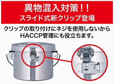 料理の配送、作り置きに便利。保温・保冷性能に優れ、料理を作りたての味でストックできます。スライド式グリップ構造、パッキン付きタイプ。