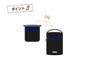 専用ポーチは背面にミニポケット付き。カトラリーなどを入れられます。